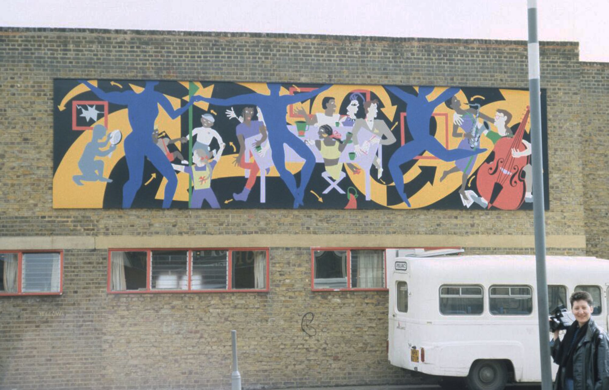 Painted by: Brass Tacks Mural Group: Mark Beavan, Maggie Clyde, Susan Elliott, Sonia Martin, Louise Vines.