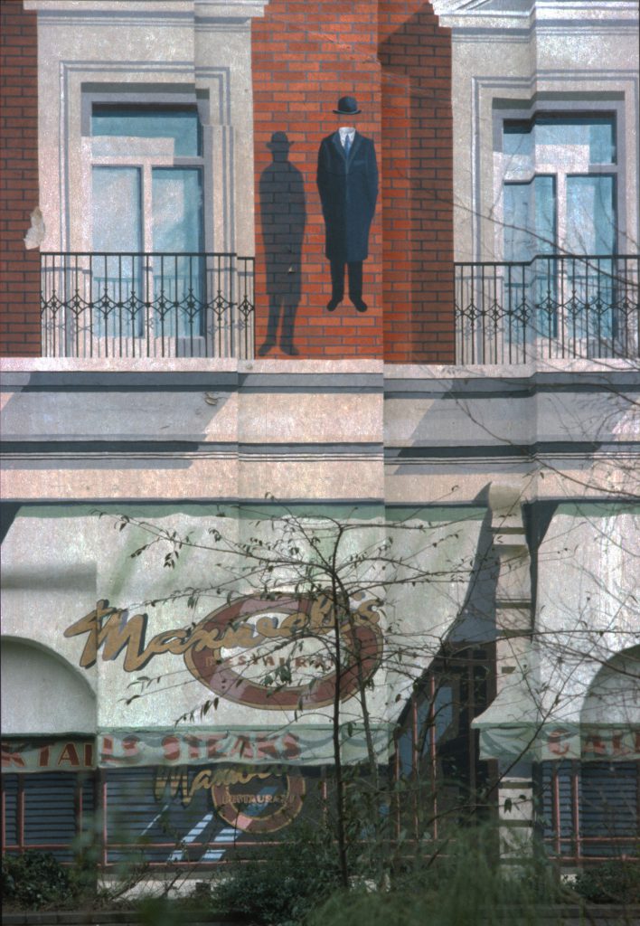 Ken White.Note that Magritte man now sports an umbrella to protect him from the falling masonry.
