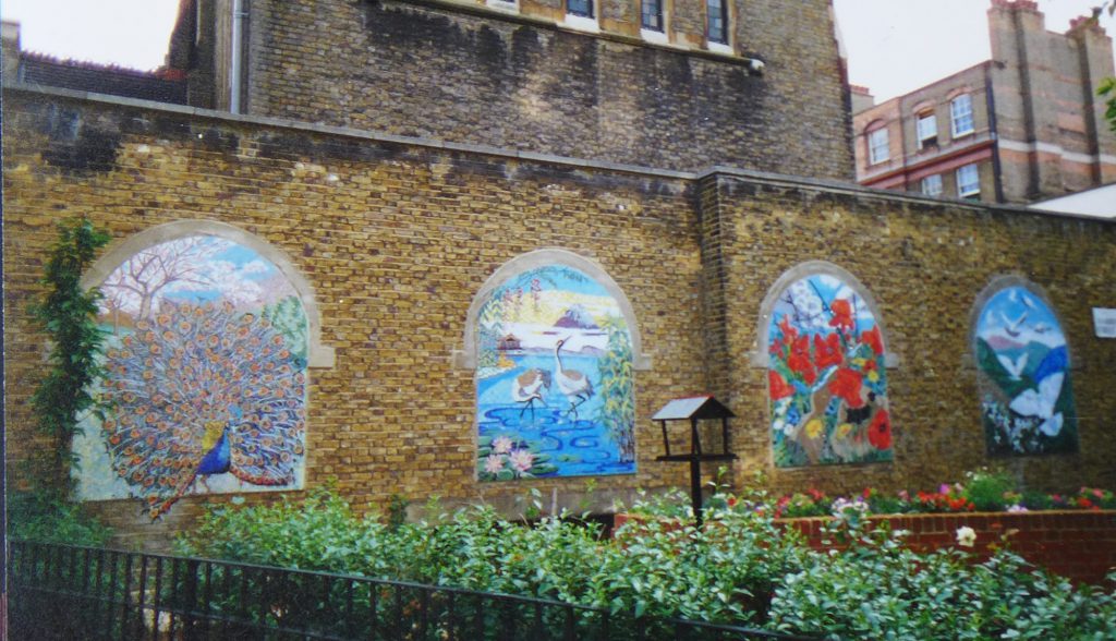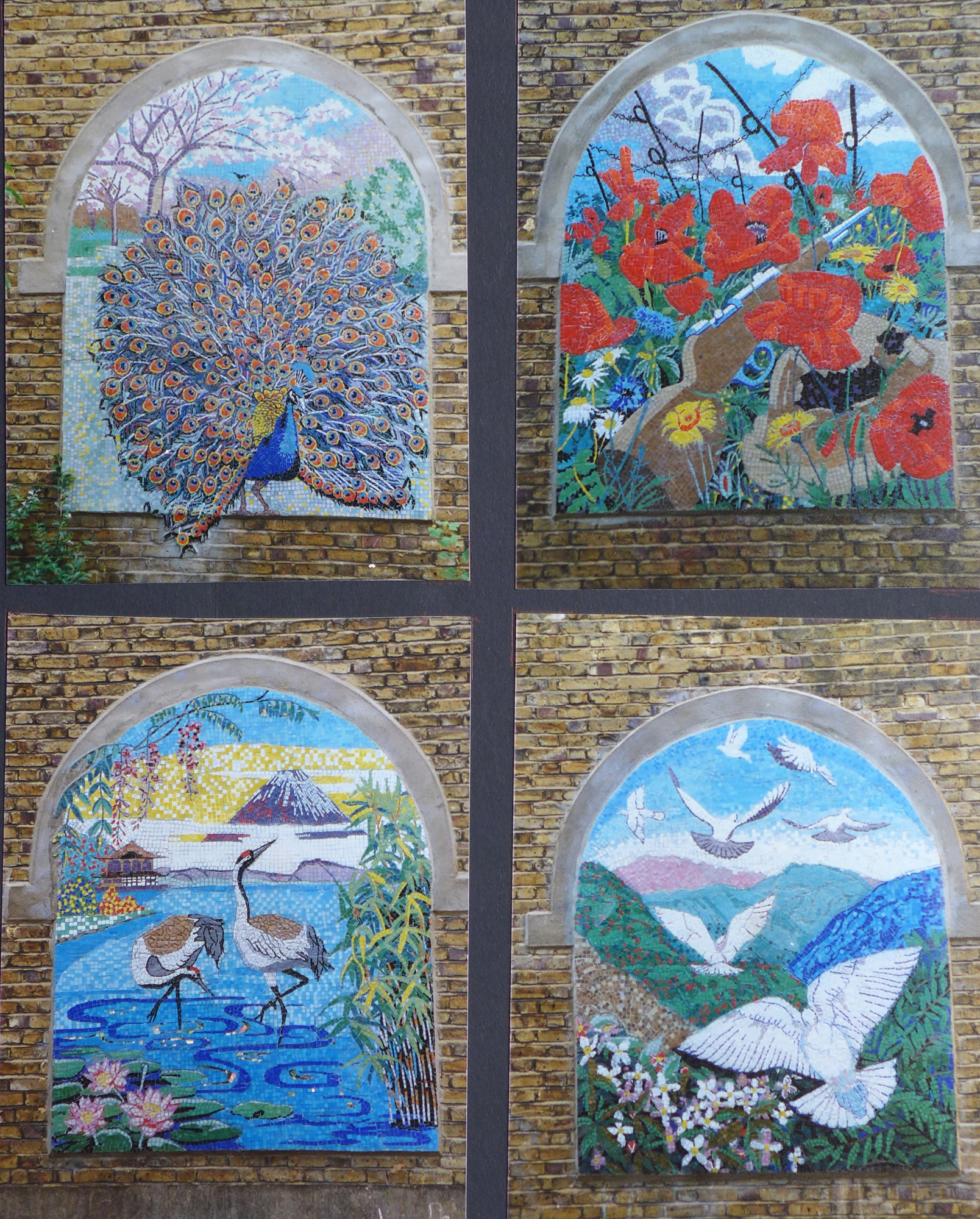 Theme: The Crane: Japanese symbol of Peace; Poppies in memory of WWI’ Doves – a universal symbol of peace’ The Peacock – symbolising the beauty of the living world. Created by the artists and attendees of the Day Care Centre for the Elderly.