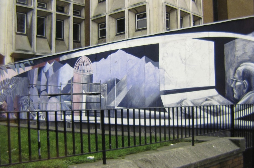 Funders: Greater London Council via London Muralists for Peace. Greater London Arts. A London Muralists for Peace initiative: Brian Barnes, Paul Butler, Dale McCrae, Pauline Harding, Greenwich Mural Workshop – Carol Kenna & Stephen Lobb & Ray Walker.